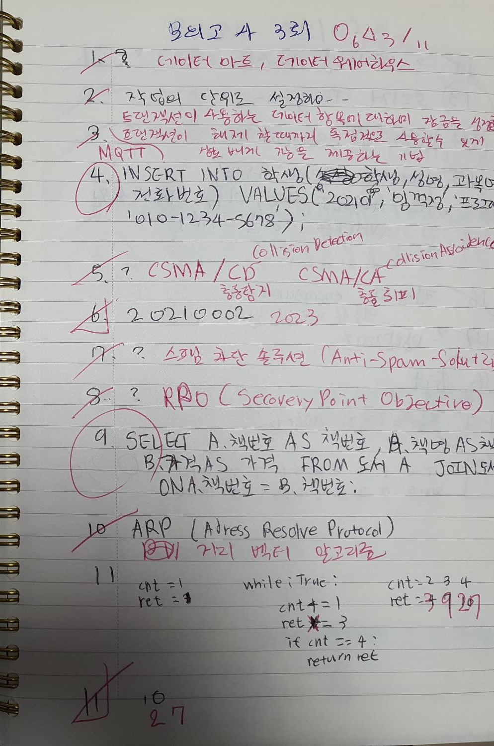 실기는 손으로 답을 작성해야하기 때문에 문제를 풀 땐 노트에 답을 작성하고 복기 할때도 노트에 작성하는 연습을 했다.