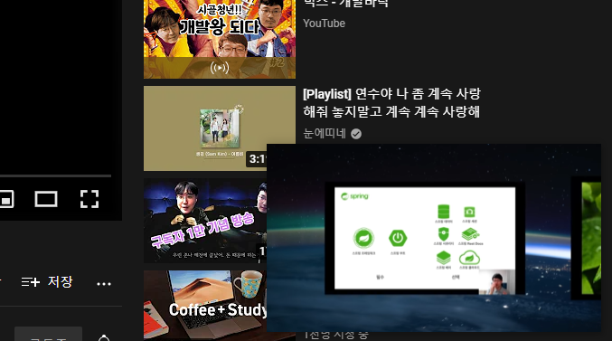 이때 나오는 PIP 모드를 누르면 아래 사진처럼 작은 화면으로 영상이 뽑아져 나온다.