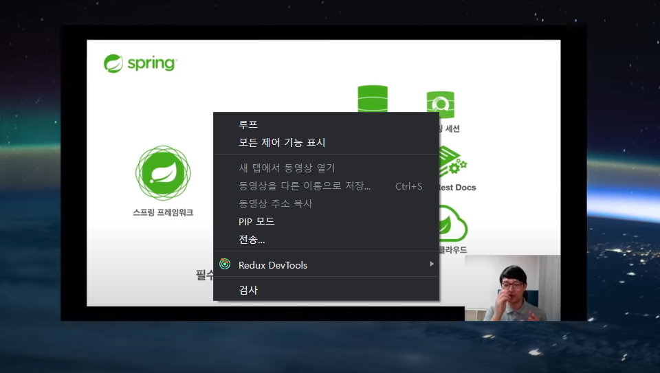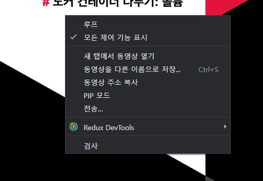 유튜브는 두번 우클릭시, 인프런은 바로 PIP모드가 나오지만 패스트 캠퍼스의 경우엔 여러번 클릭해도 자체 제작한 옵션만 나온다.