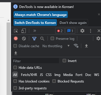 이때는 F12를 눌러 개발자 도구를 켠 뒤 오른쪽 위 톱니바퀴를 눌러 설정에 들어간다.