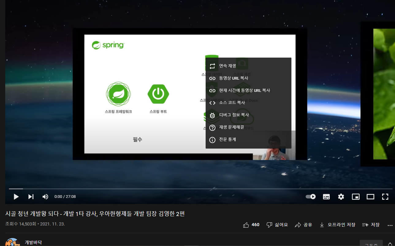 그래서 유튜브 영상 위를 우클릭해보면 아래와 같이 자체 제작한 옵션이 나온다.