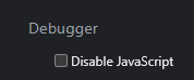이후 아래로 스크롤을 내리면 나오는 디버거 항목에서 자바스크립트 사용을 막는 설정에 체크한다.