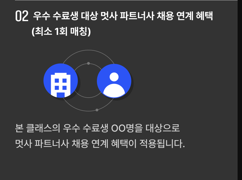 또한 멋사 파트너사 채용 연계 최소 1회 매칭의 혜택이 있다.