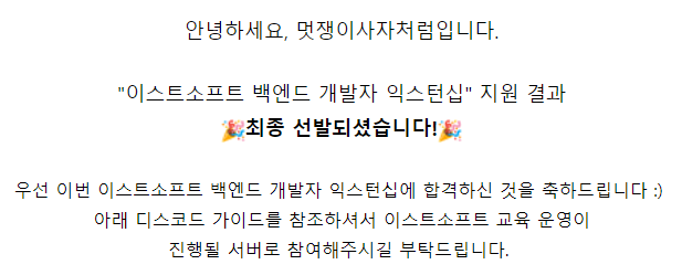 정말 절실한 마음을 담아 작성했고, 오늘 이스트소프트 익스턴십 1기 합격 메일을 받았다.