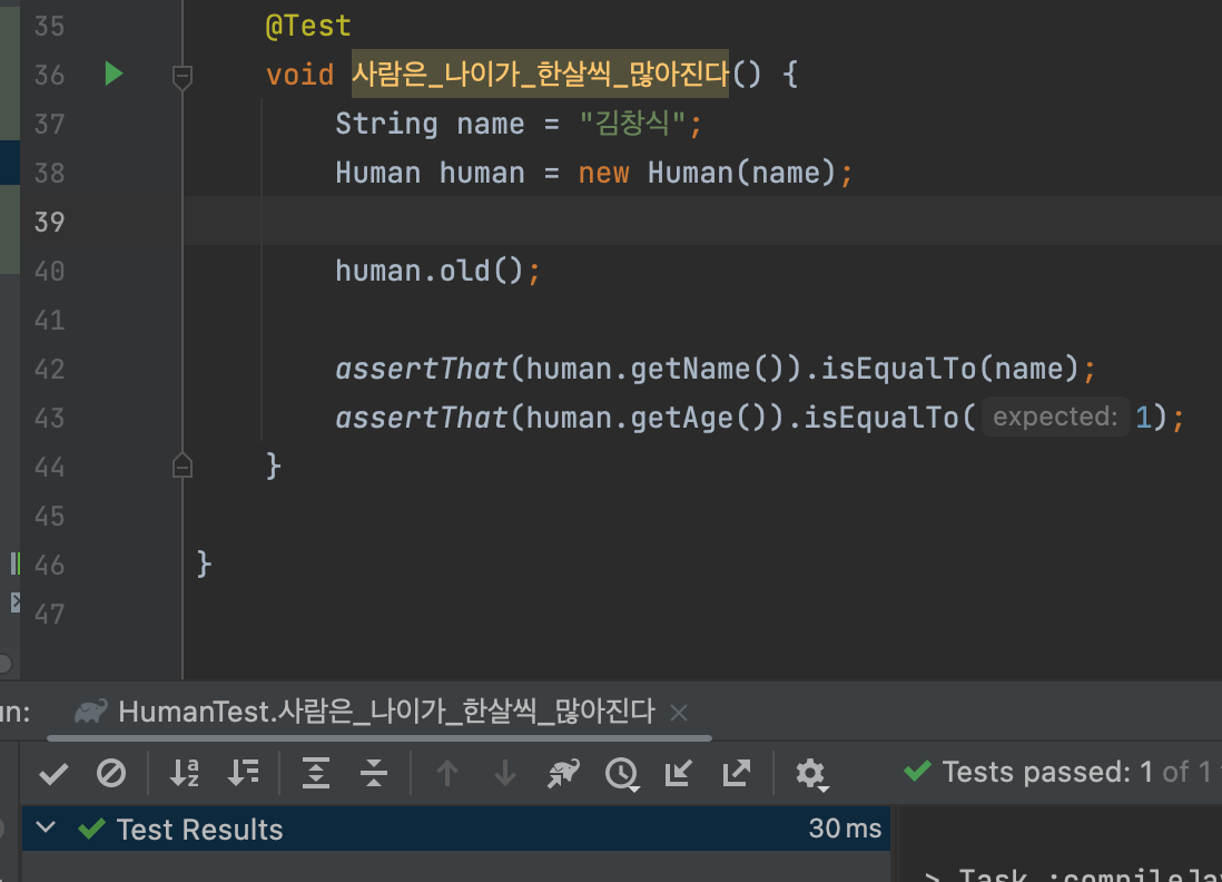 모든 구현을 마친 뒤 다시 테스트를 돌렸을 때 여전히 성공해야 한다.