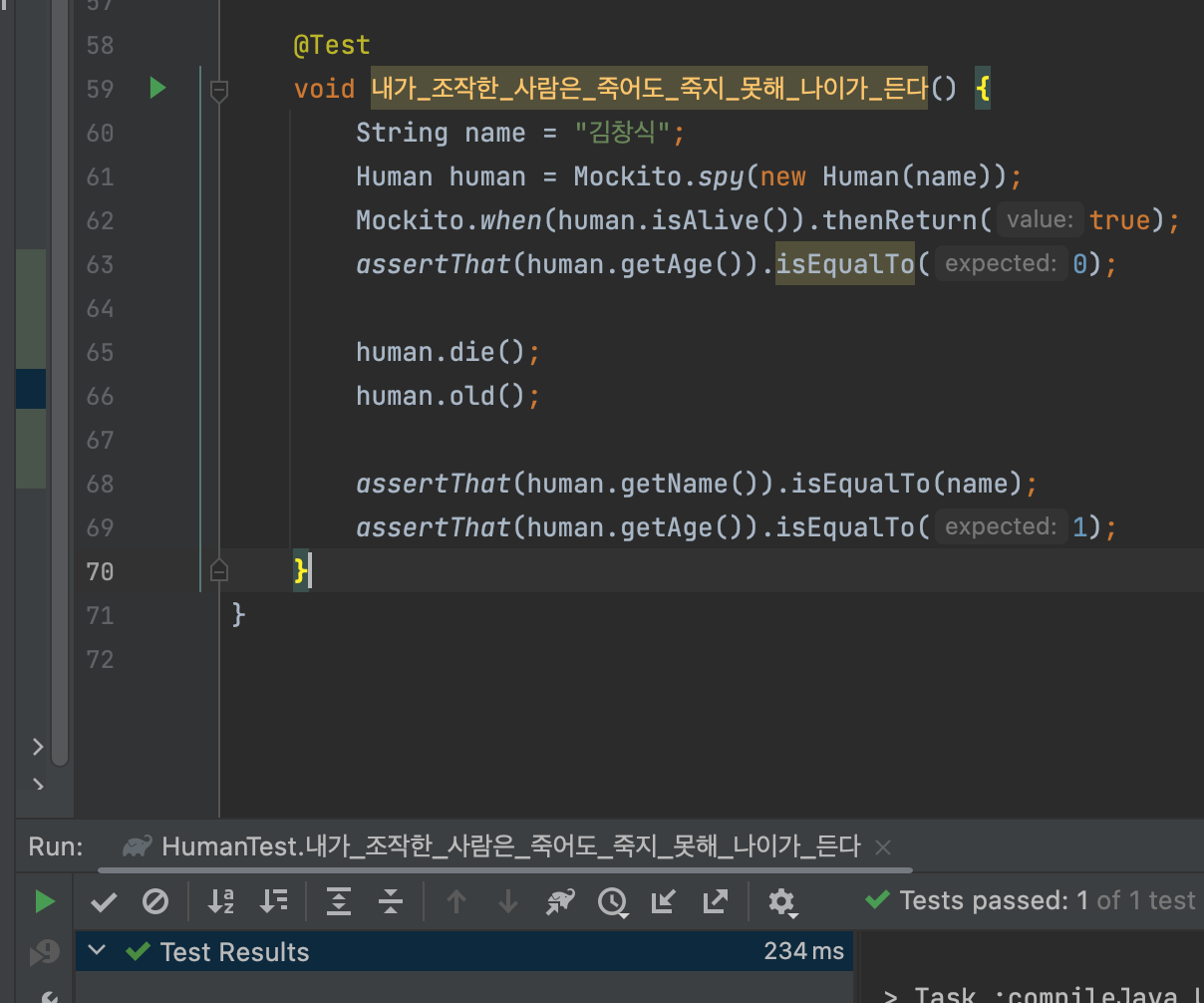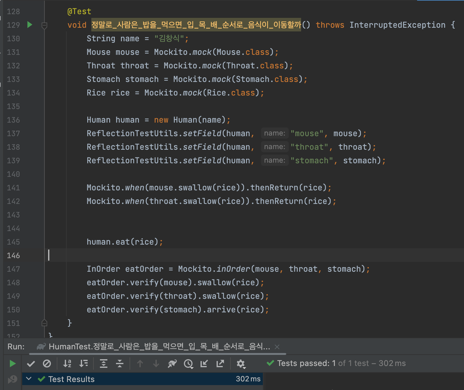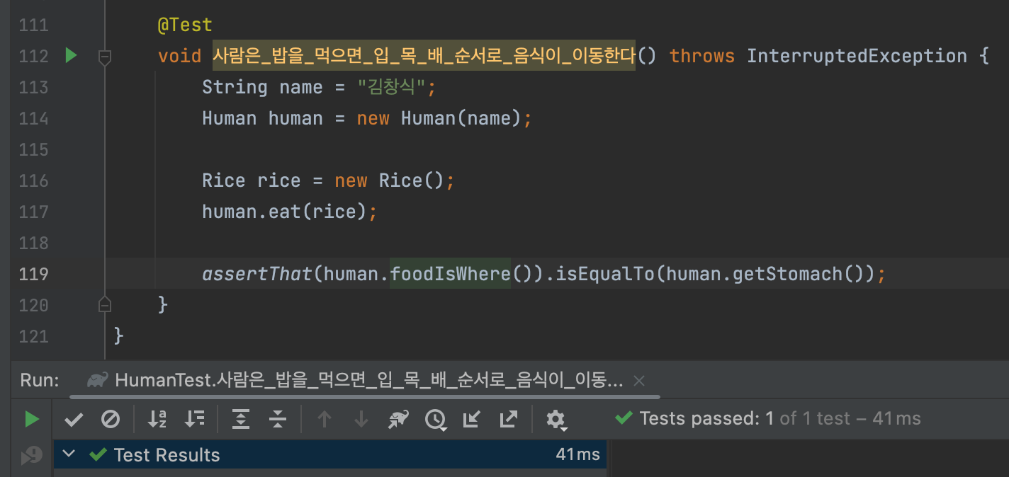 그래서 테스트를 작성하고 내가 만든 가짜 장기를 넣어서 음식을 먹여보기로 했다.