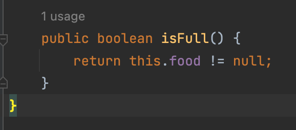 그리고 먹는다는 행위를 할 수 있도록 해주고 음식의 위치를 확인하여 어느 신체부위인지 반환하는 메서드를 추가해 준다.