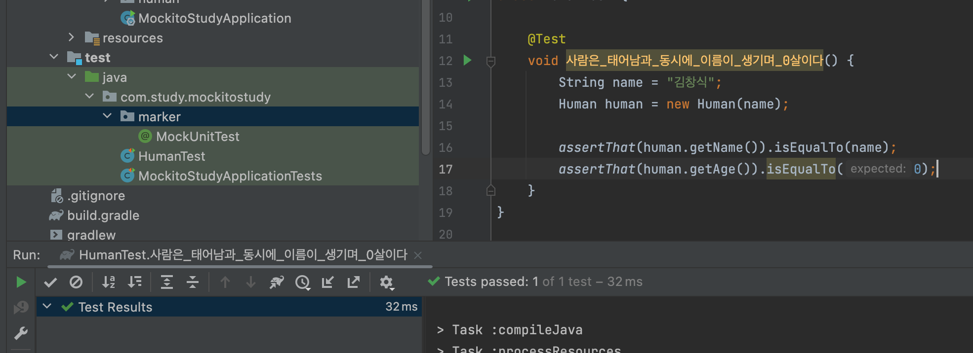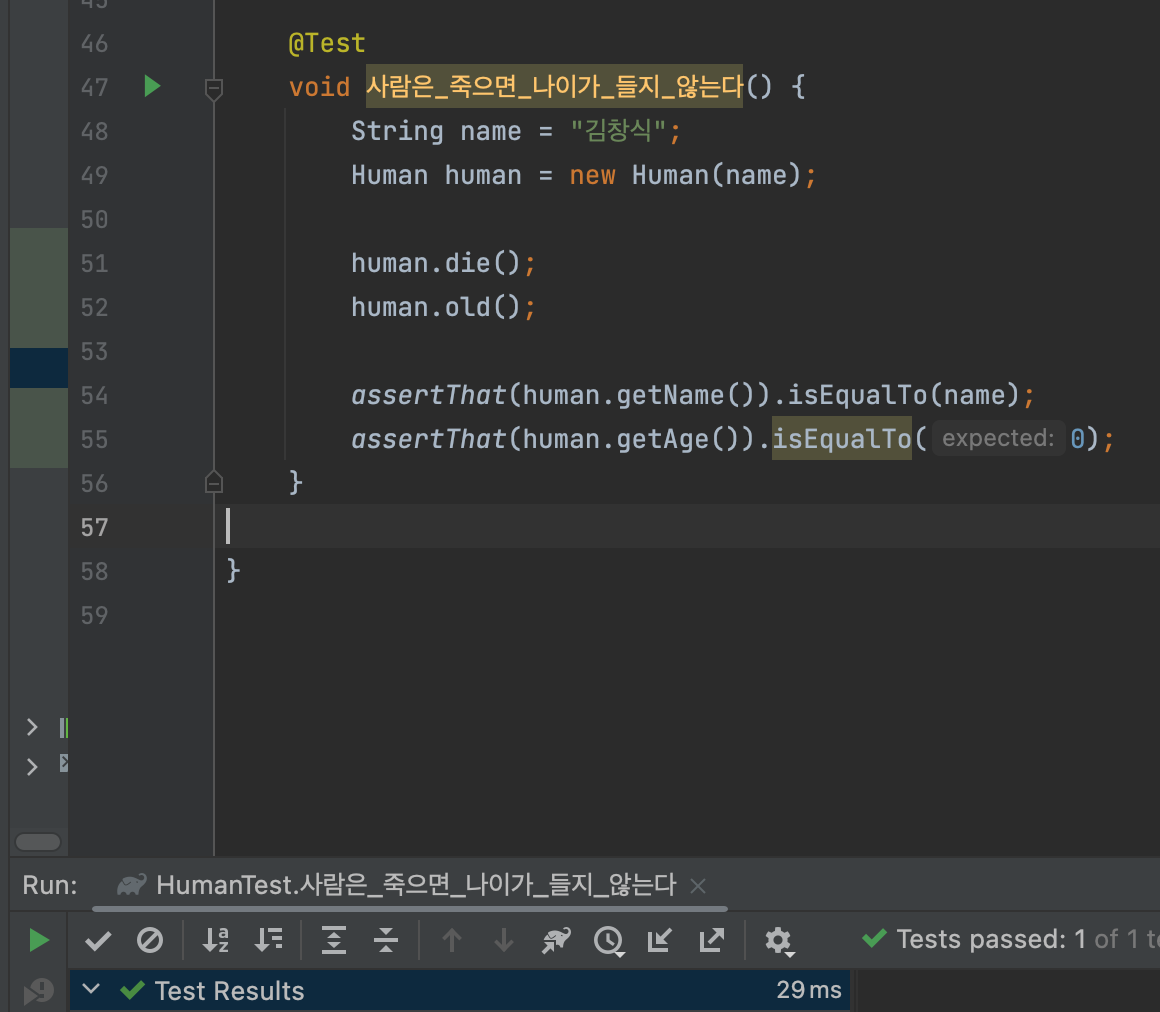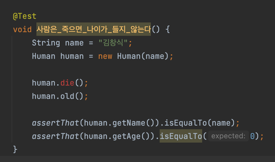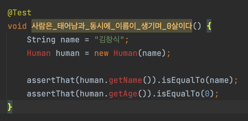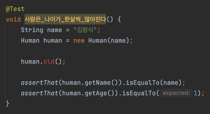 assertThat(human.getName()).isEqualTo(name);