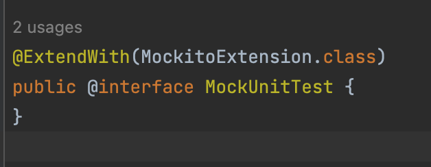 우선 모킹을 하기 위한 사전 작업을 하자, 익스텐션만 추가해도 되지만 이름을 부여하기 위해 어노테이션을 따로 만들었다.