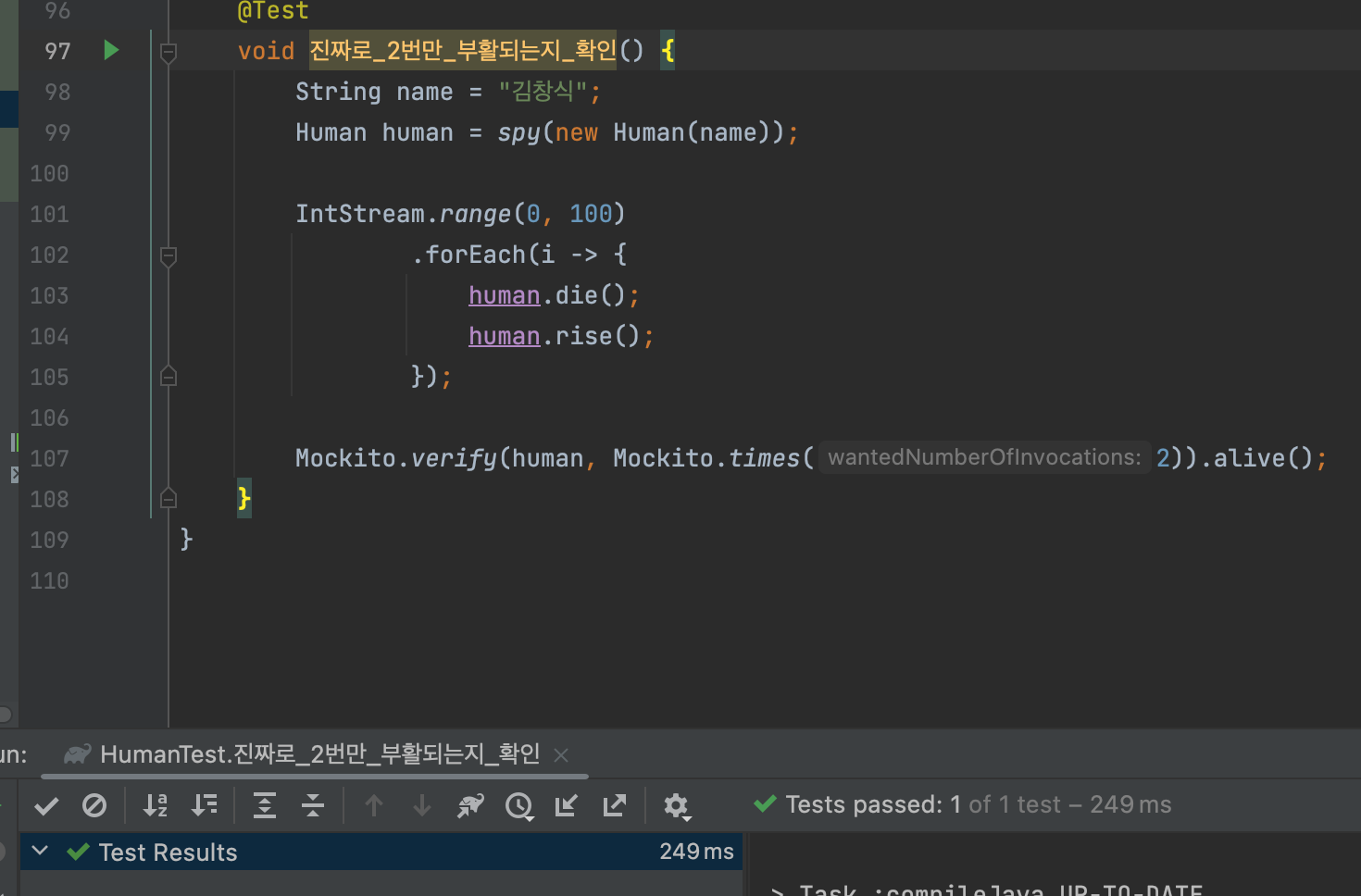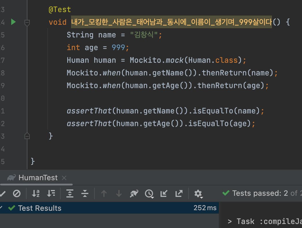 그래서 내가 모킹 한 사람은 태어나자마자 999살이 되도록 해주려 하는데 아래 테스트를 통과시키려면 어떻게 해야 할까?