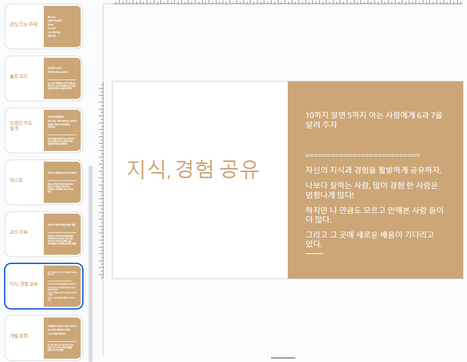 이 좋은 기회를 놓칠 수 없지, 2개 조의 멘토링 첫 시간에 내 소개를 하며 아래 항목에서 이렇게 나를 소개했다.